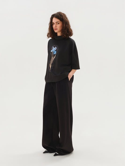 Black blouse with blue flower