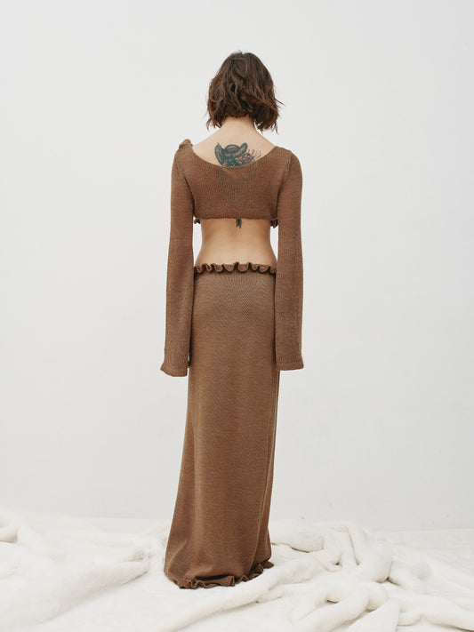 Knitted skirt with rose in brown