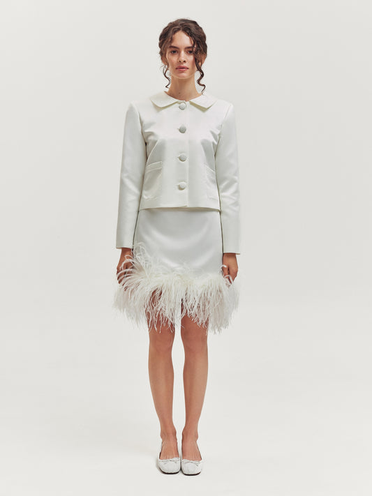 Milky satin skirt with fur