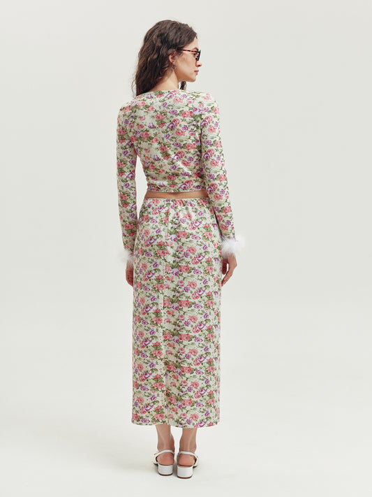 Maxi skirt with roses in buttercream