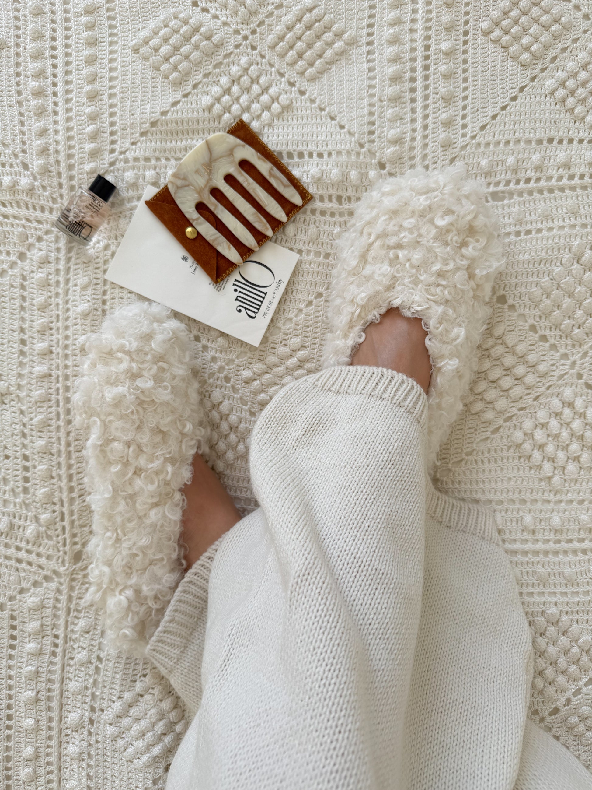Curly milk home slippers