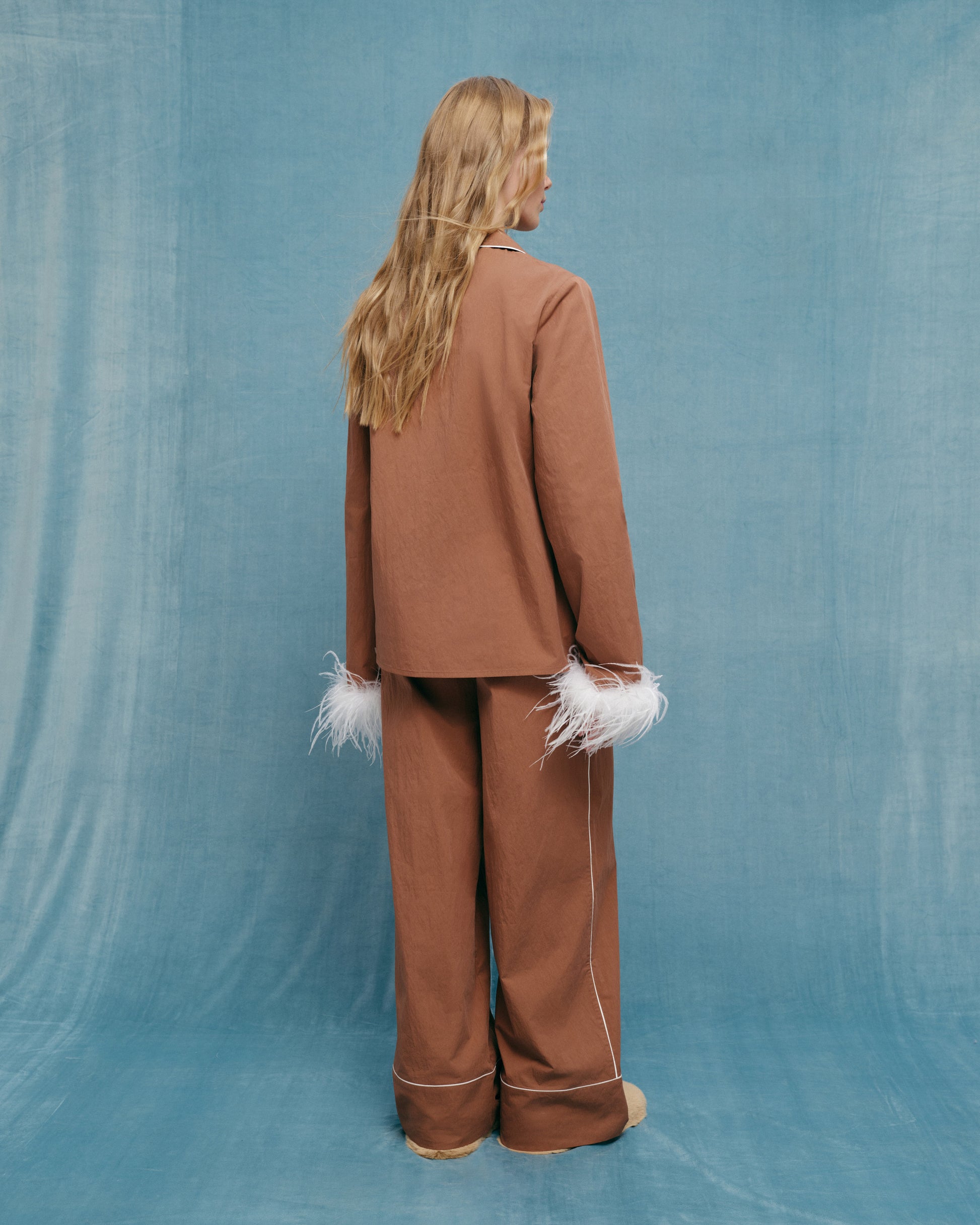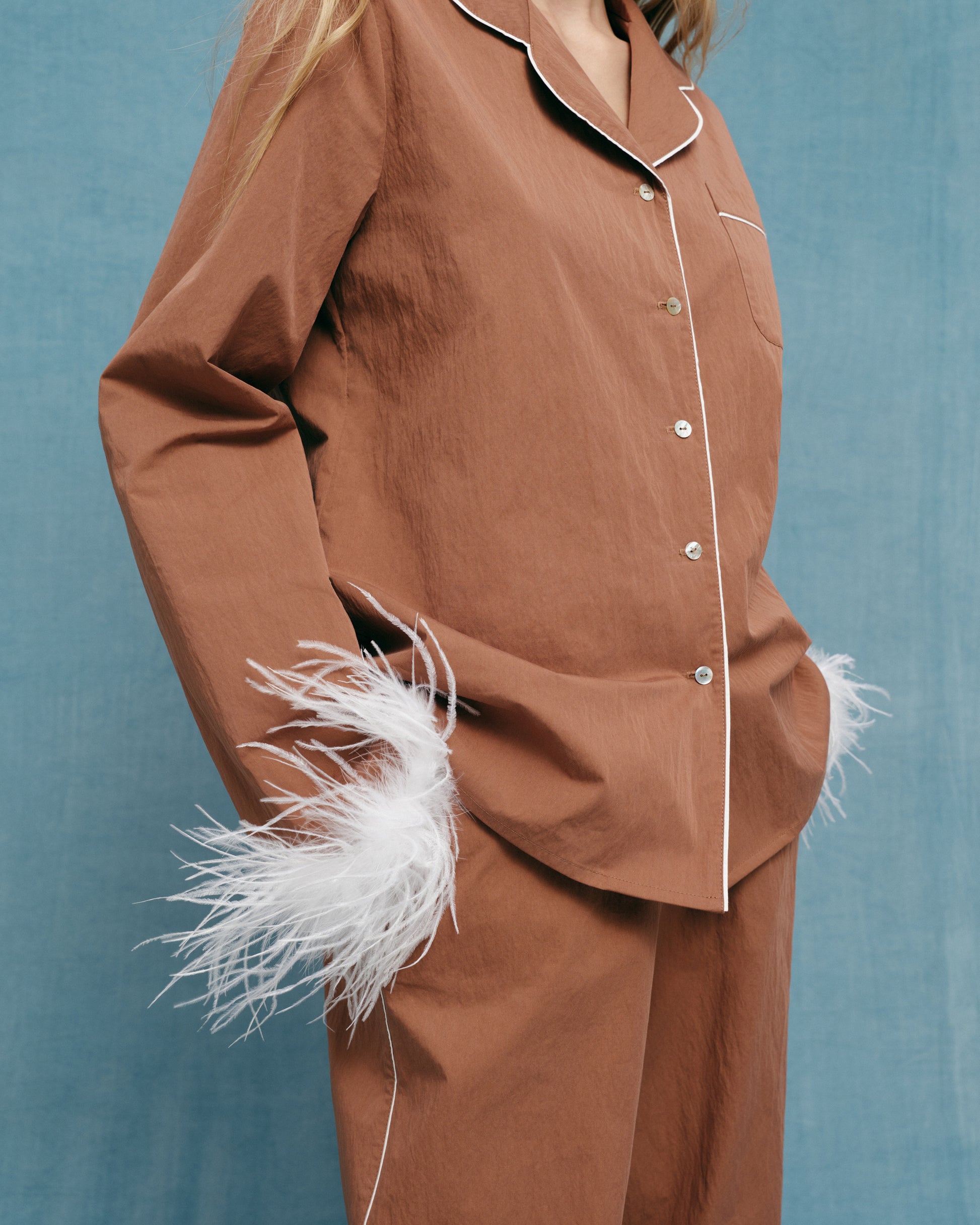 Піжамна блуза з пірʼям в коричневому кольорі